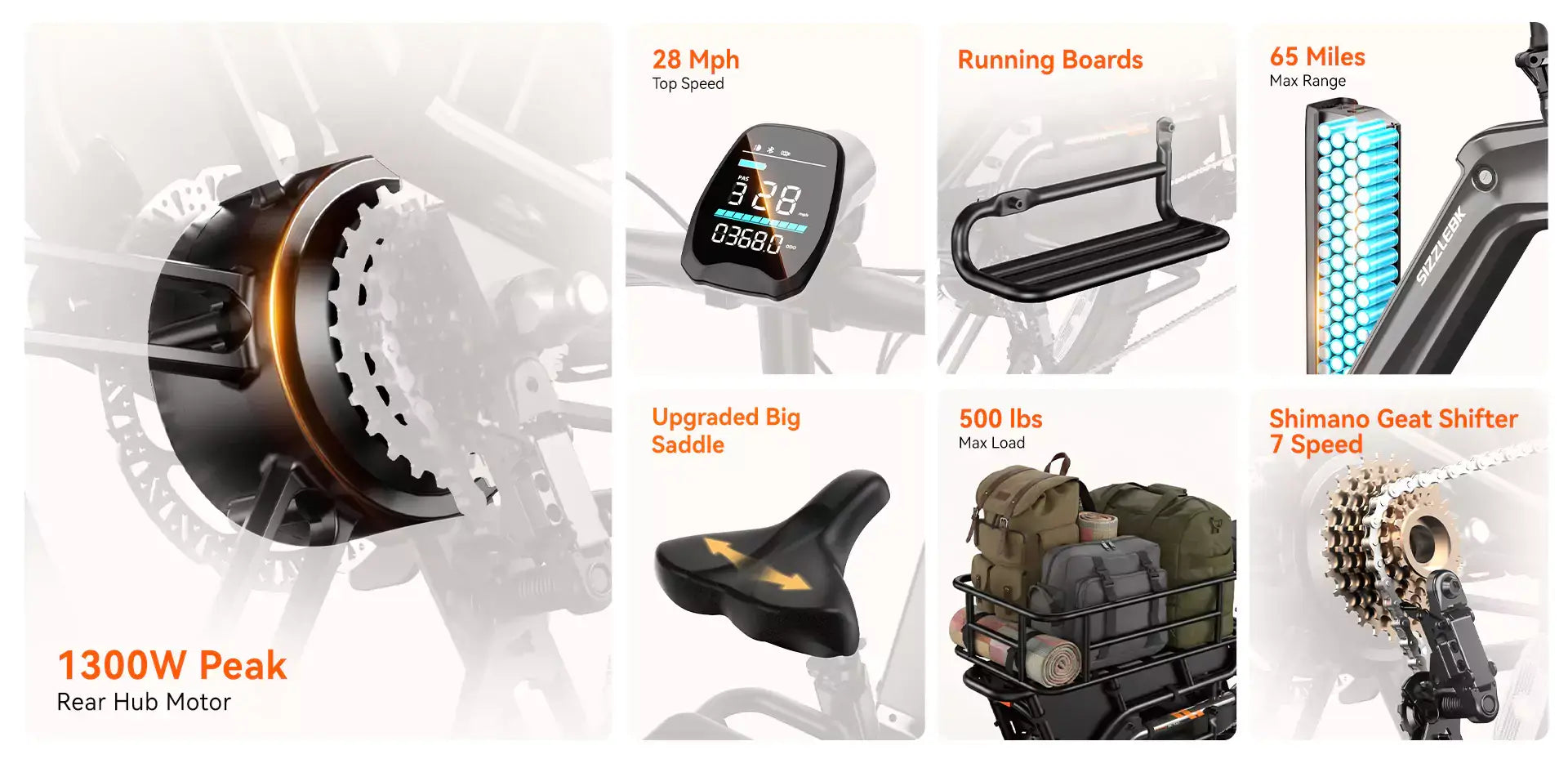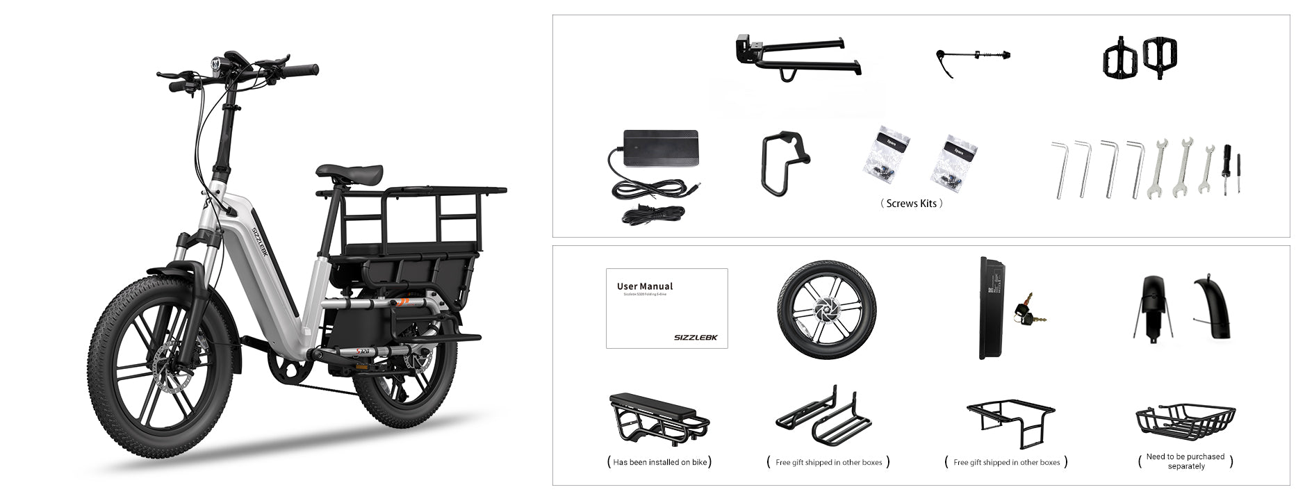 From school drop-offs to weekend adventures, the S320 comes ready. With a kids’ seat, rear rack, running boards, seat pad, and wheel guards included, you get a cargo bike designed for safety, comfort, and carrying capacity right out of the box.