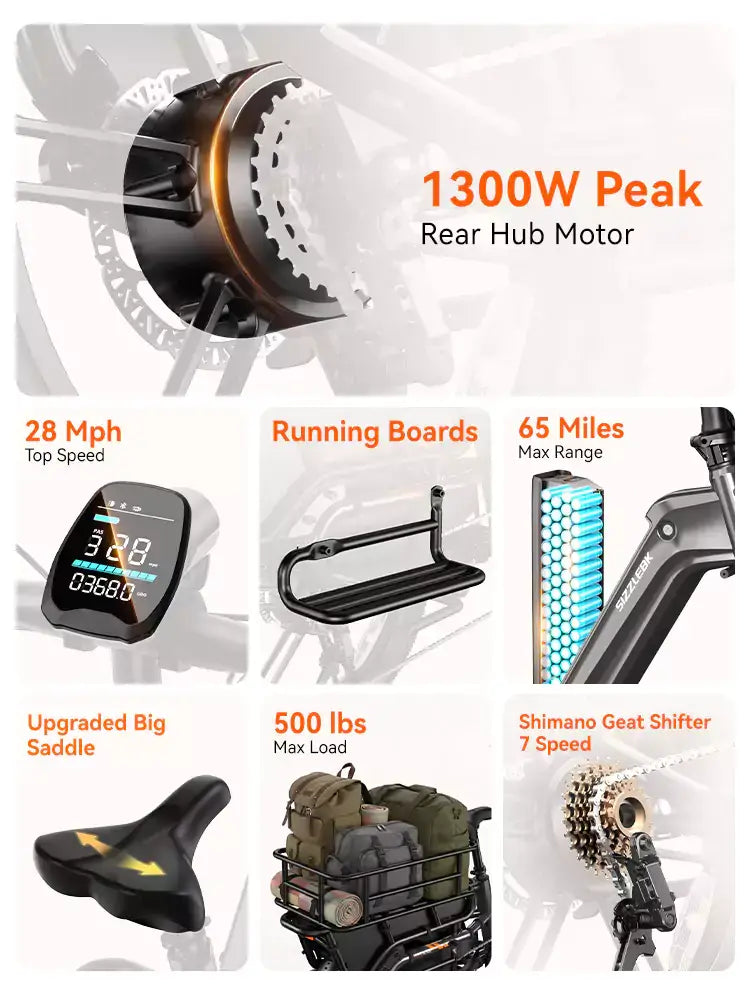 The S320 is made for serious hauling. With a 500-lb payload and a battery offering up to 65 miles on pedal assist, you can pack in groceries, kids, or gear and still make it to your destination—and back. No range anxiety. No compromises.
