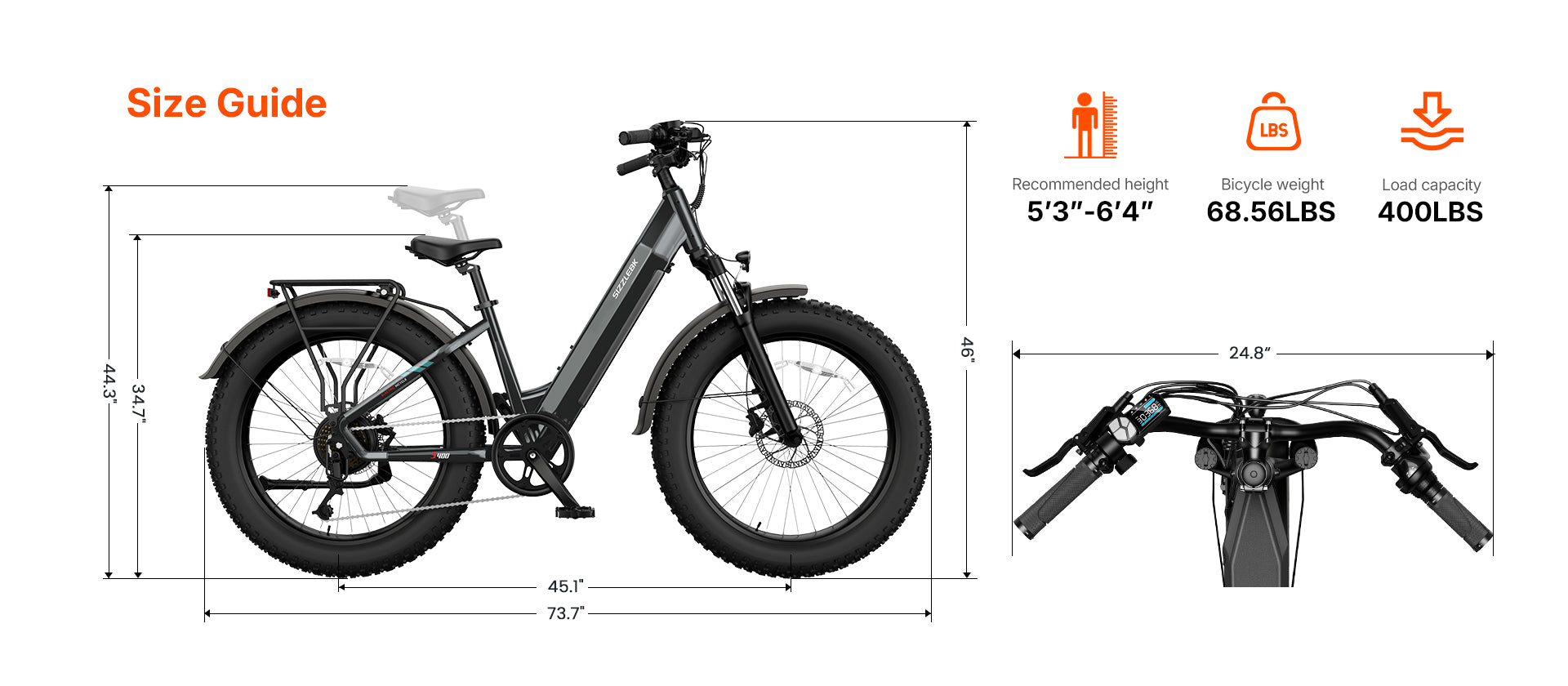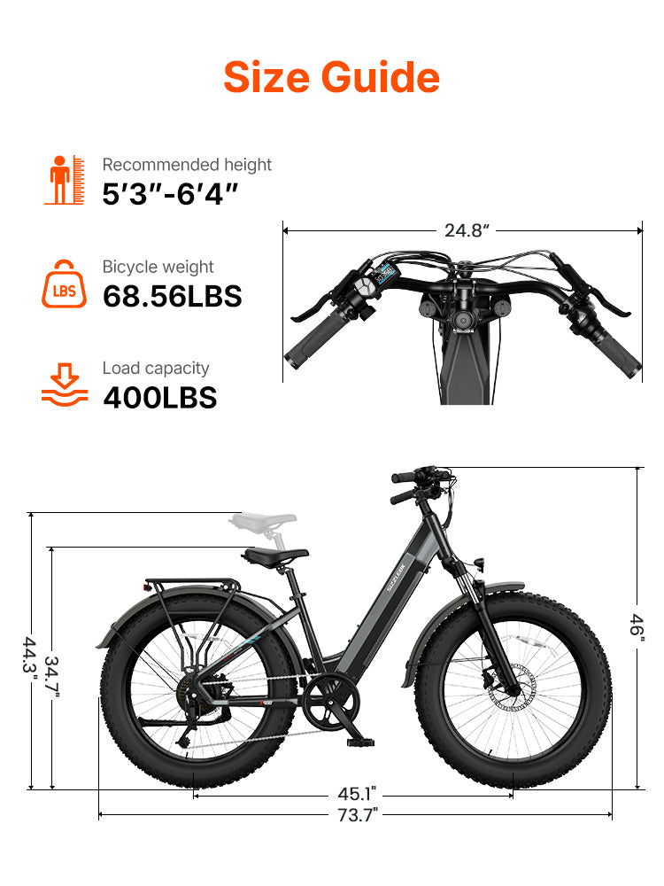 Thanks to its robust aluminum-alloy frame and front-suspension setup, the step-thru S400 supports up to 400 lbs. Its low-step design also makes mounting and dismounting effortless.