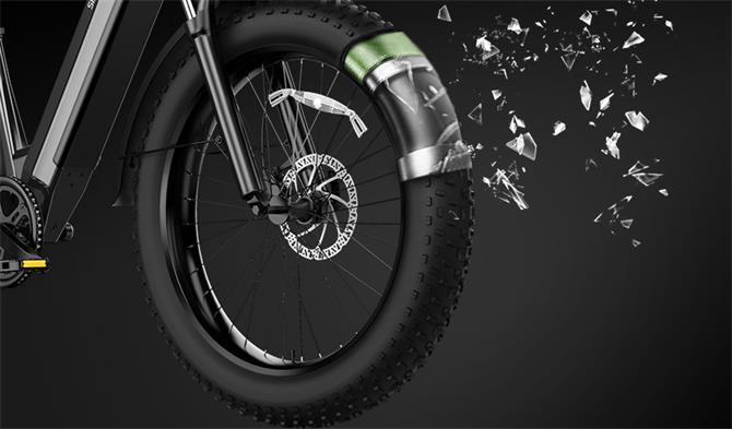 The 26″ × 4.0″ puncture-resistant fat tires deliver exceptional grip and stability on snow, sand, gravel, and rocky trails—while still rolling comfortably on pavement. To keep them performing their best, check tire pressure regularly (typically 8–15 psi) and inspect for embedded debris; their reinforced sidewalls also resist punctures from thorns and glass.